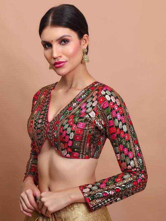 Multicolor Silk Sweetheart Neck Readymade Blouse