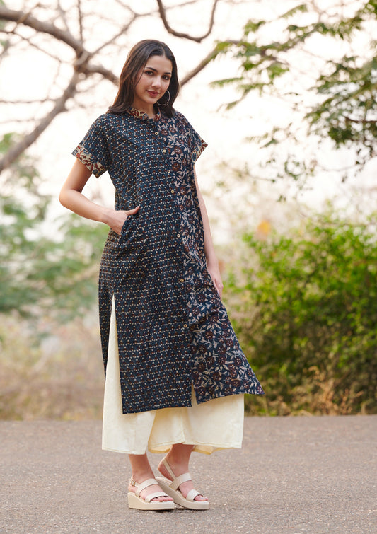 Classic Blue Ajrakh Pure Cotton Oversized Long Kurta