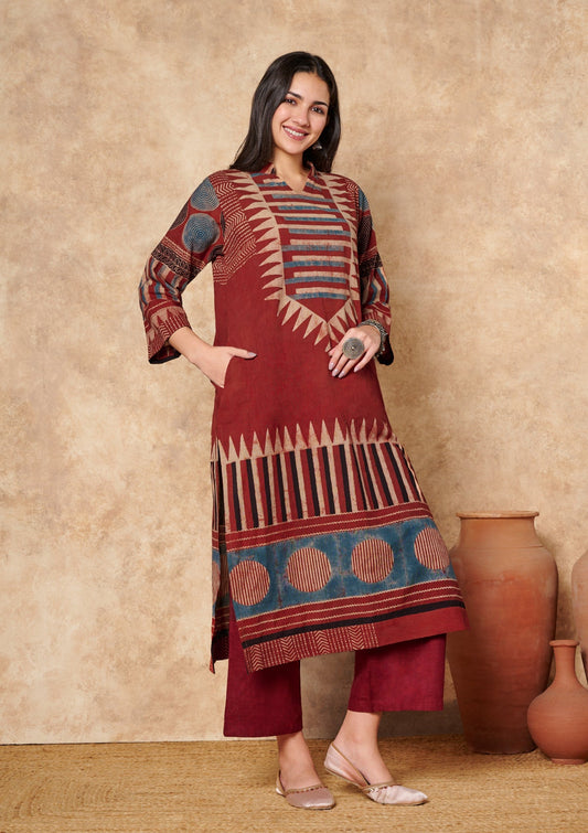 Classic Red Ajrakh Pure Cotton Oversized Long Kurta