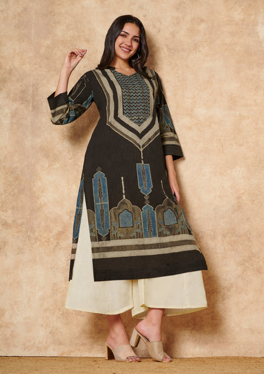 Classic Black Ajrakh Pure Cotton Oversized Long Kurta