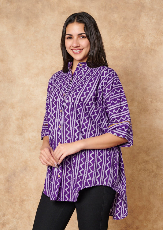 Classic Purple Batik Pure Cotton Oversize Shirt