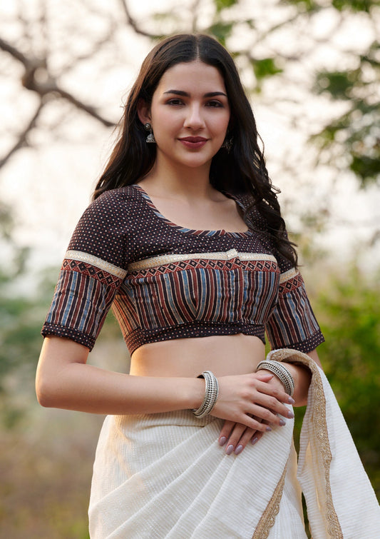 Blue Hand Block Printed Ajrakh Pure Cotton Readymade blouse