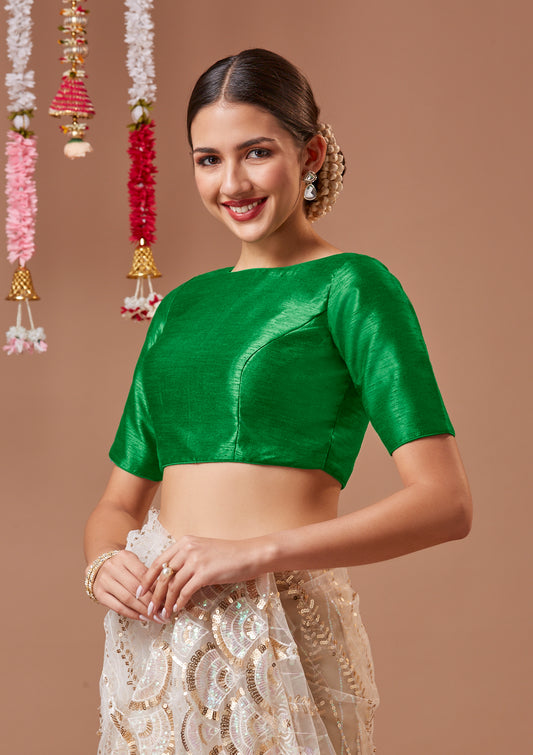 Green Hand Block Printed Ajrakh Pure Cotton Round Neck Readymade Blouse