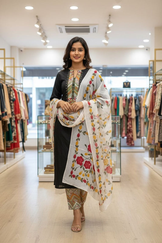 Black Cotton Printed Unstitched Dress Material (2 Pc)
