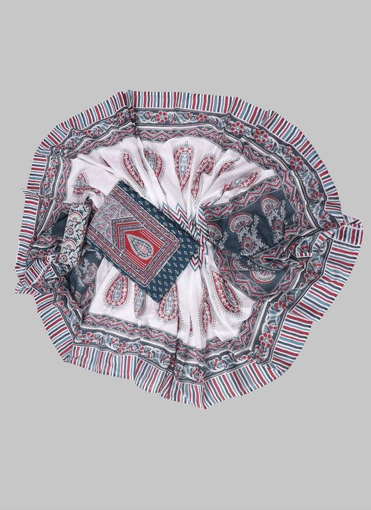 Blue and White Printed Floral Block Print Cotton Unstitched Dress Material