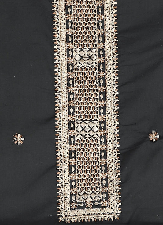 Cotton Embroidered Black Unstitched Dress Material With Dupatta