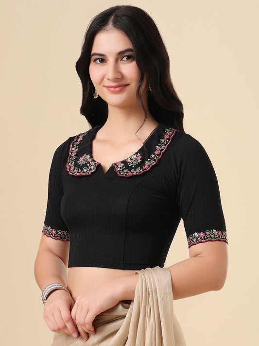 Black Lycra Peter Pan Collar Neck Readymade Blouse