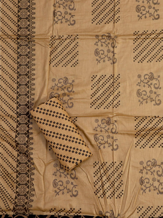 Cotton Printed Brown Unstitched Dress Material With Dupatta