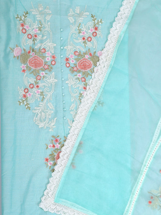 Organza Embroidered Green Unstitched Dress Material With Dupatta