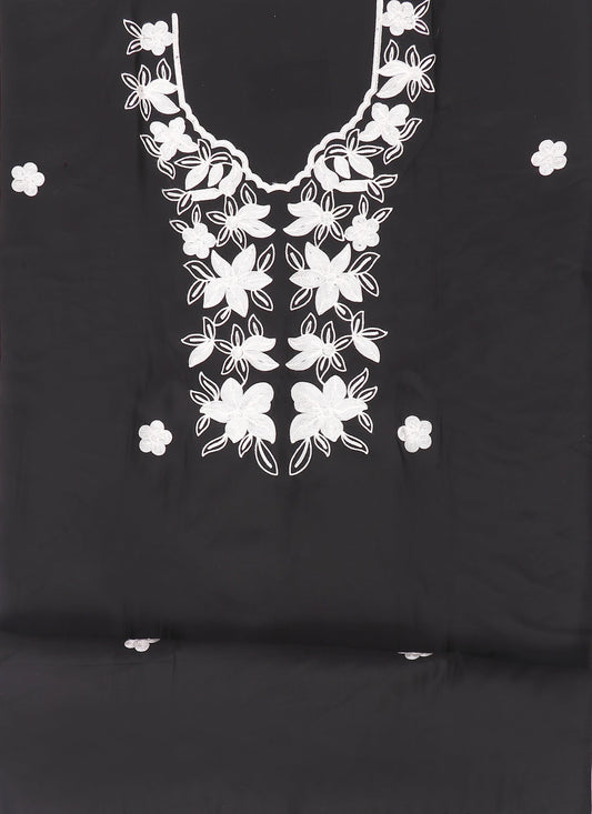 Silk Embroidered Black Unstitched Dress Material With Dupatta