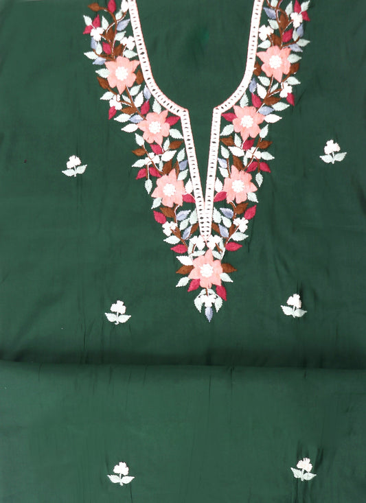 Silk Embroidered Green Unstitched Dress Material With Dupatta