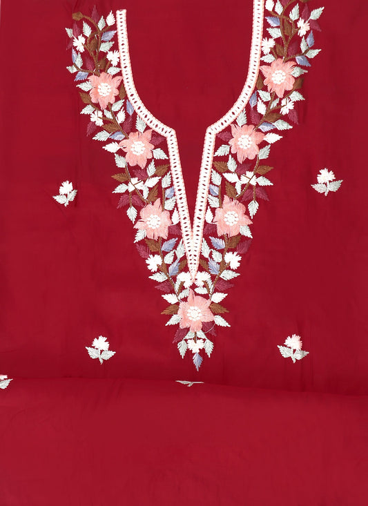 Silk Embroidered Maroon Unstitched Dress Material With Dupatta
