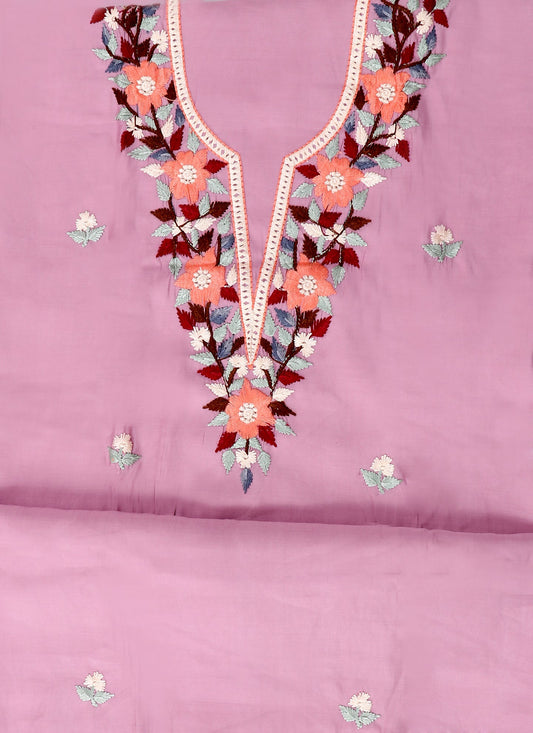 Silk Embroidered Pink Unstitched Dress Material With Dupatta