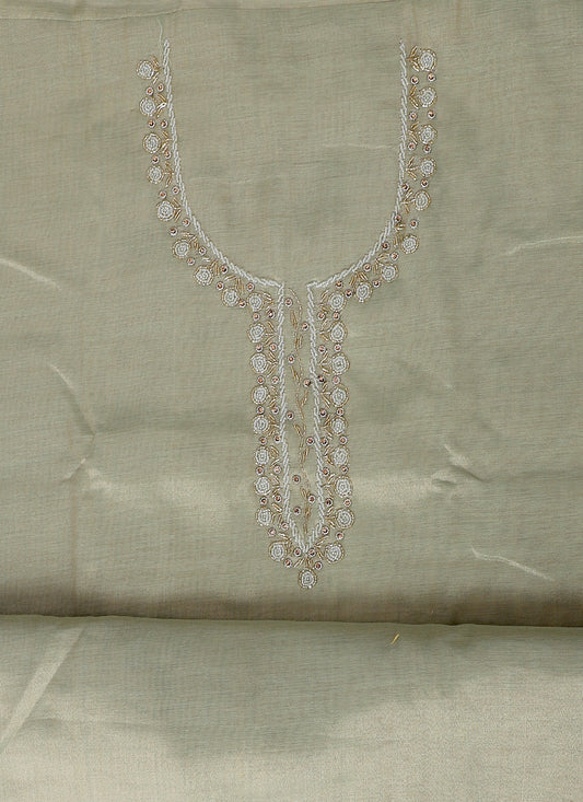 Silk Embroidered Green Unstitched Dress Material With Dupatta