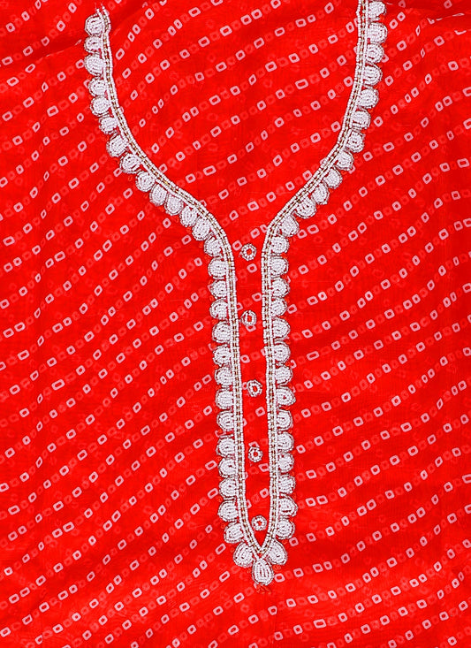 Silk Chiffon Printed Red Unstitched Dress Material With Dupatta