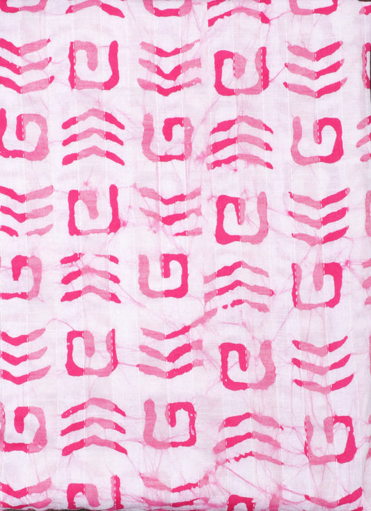 Cotton Tie & Dye Pink Unstitched Dress Material With Dupatta