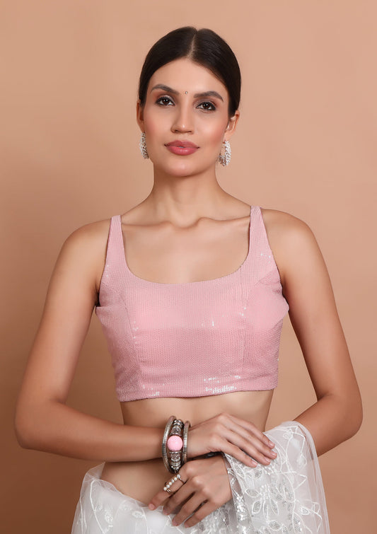 Pink Lycra Stretchable Readymade Blouse With Embellishment