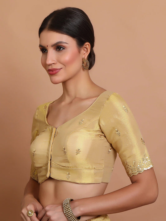 Gold Tissue Embroidered Readymade Blouse