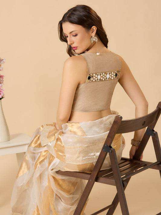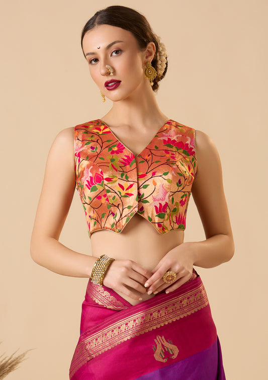 Orange Silk Sweetheart Neck Readymade Blouse