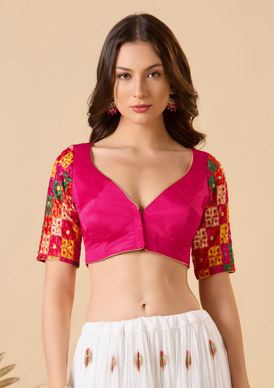 Pink Cotton Lycra Round Neck Readymade Blouse