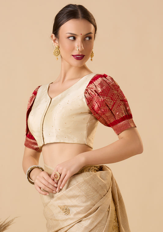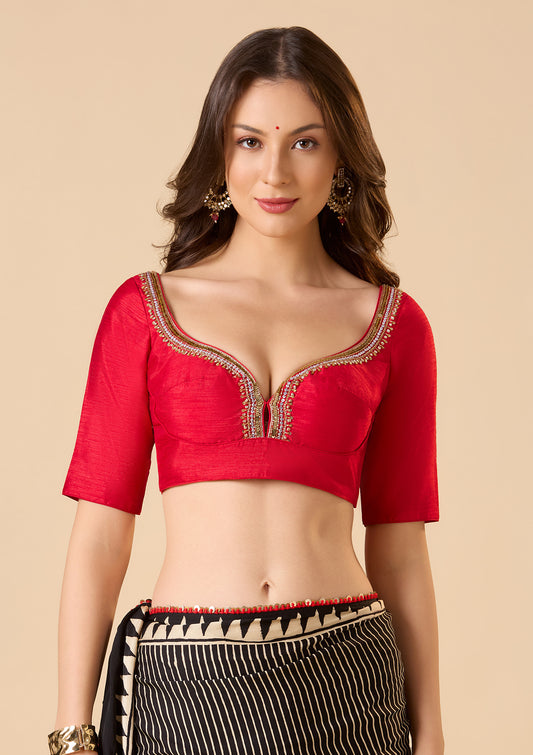 Red Woolen Round Neck Readymade Blouse