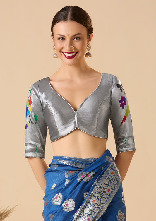 Navy Blue Woolen Round Neck Readymade Blouse