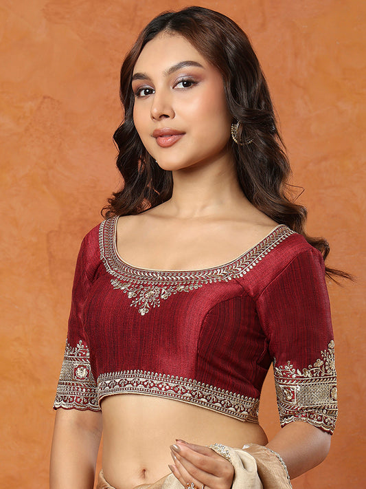 Maroon Mulberry Silk Round Neck Readymade Blouse