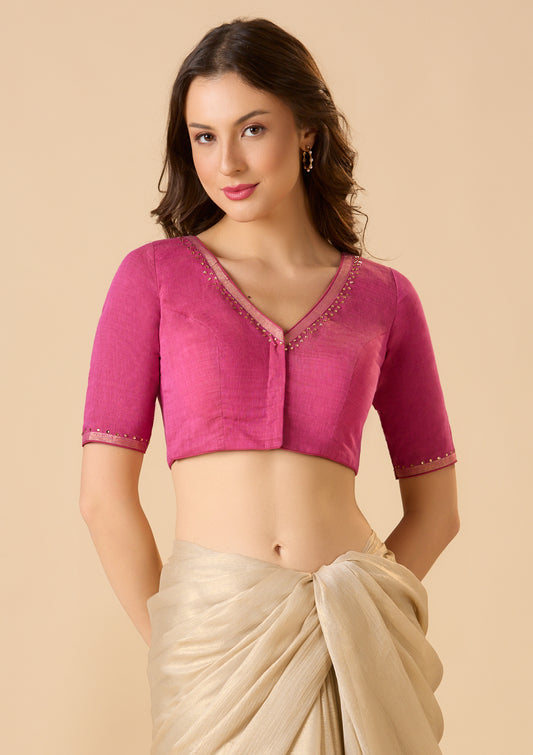 Pink Cotton Lycra Round Neck Readymade Blouse