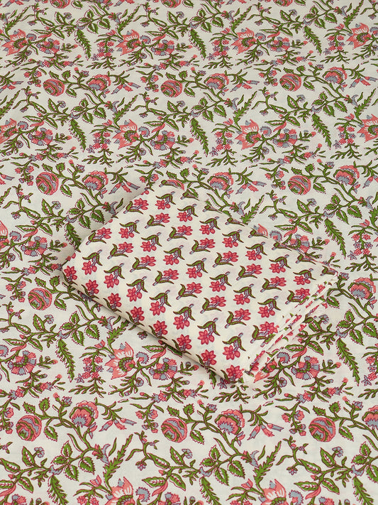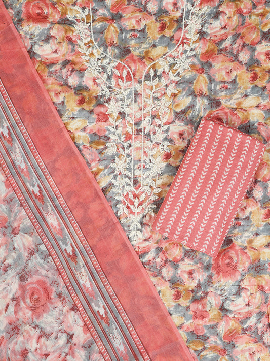 Pink Printed Cotton Printed Unstitched Dress Material (2 Pc)