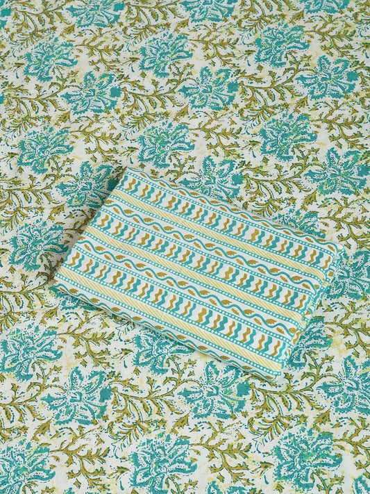 Green Printed Cotton Printed Unstitched Dress Material (2 Pc)