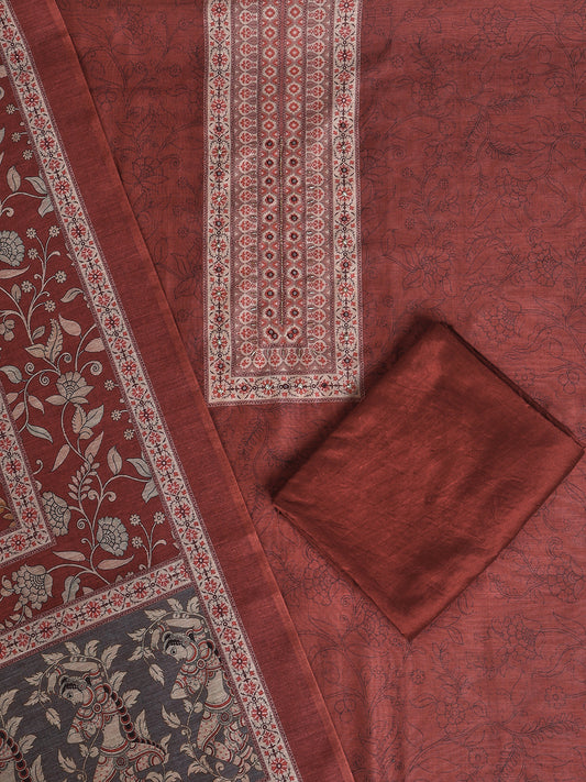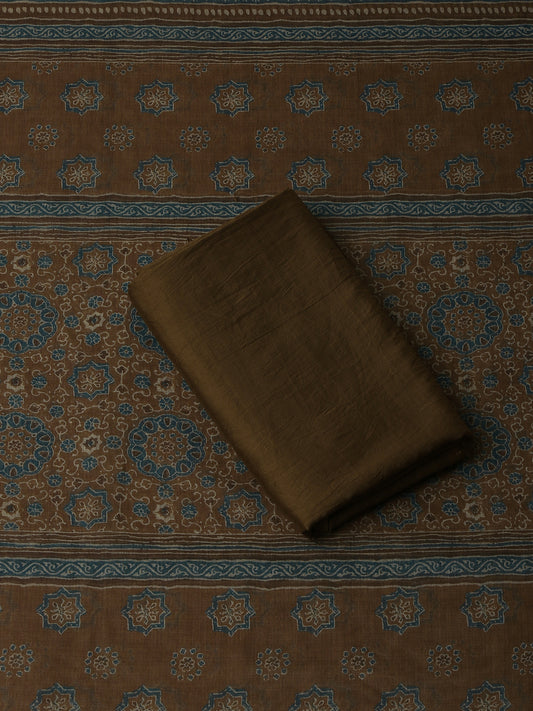 Brown Chanderi Silk Embellished Unstitched Dress Material (3 Pc)