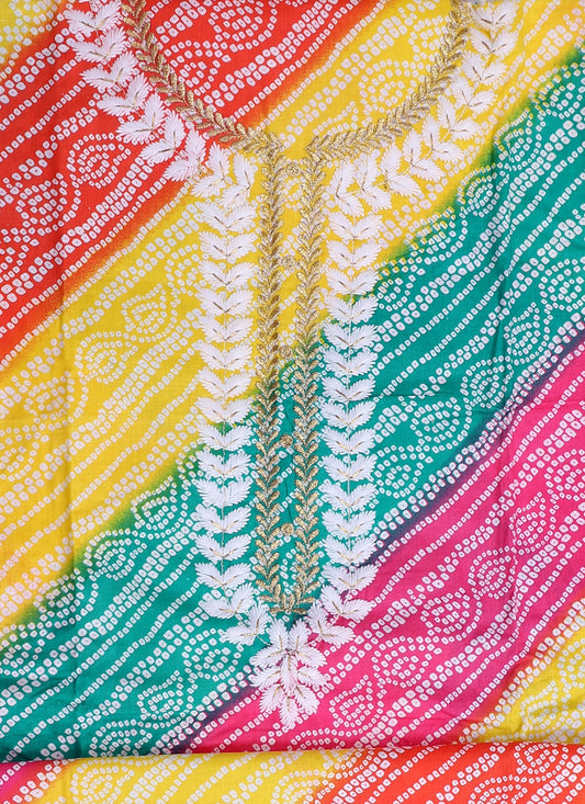 Cotton Embroidered Multicolor Unstitched Dress Material With Dupatta
