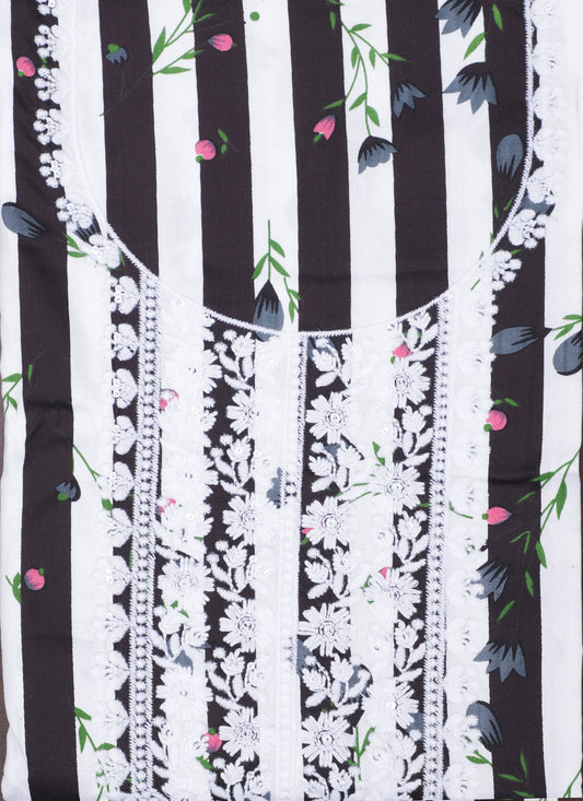 Cotton Printed Black Unstitched Dress Material With Dupatta