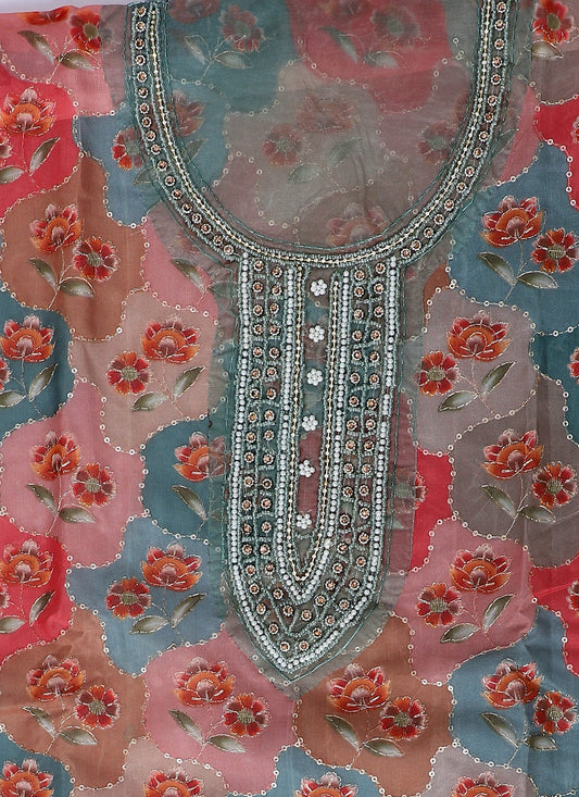 Organza Embroidered Green Unstitched Dress Material With Dupatta