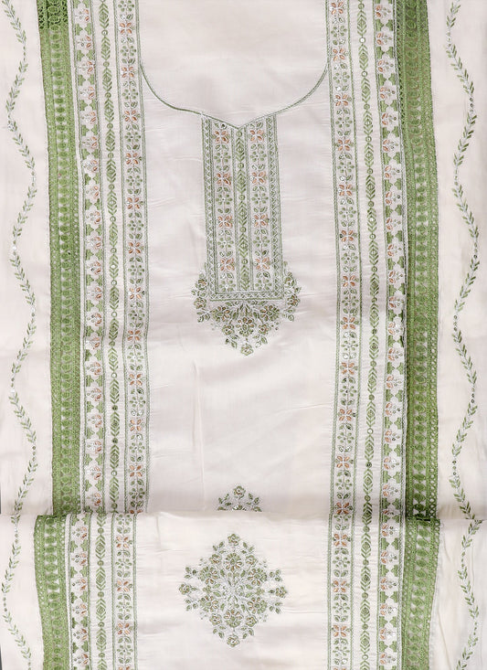Silk Embroidered Green & White Unstitched Dress Material With Dupatta