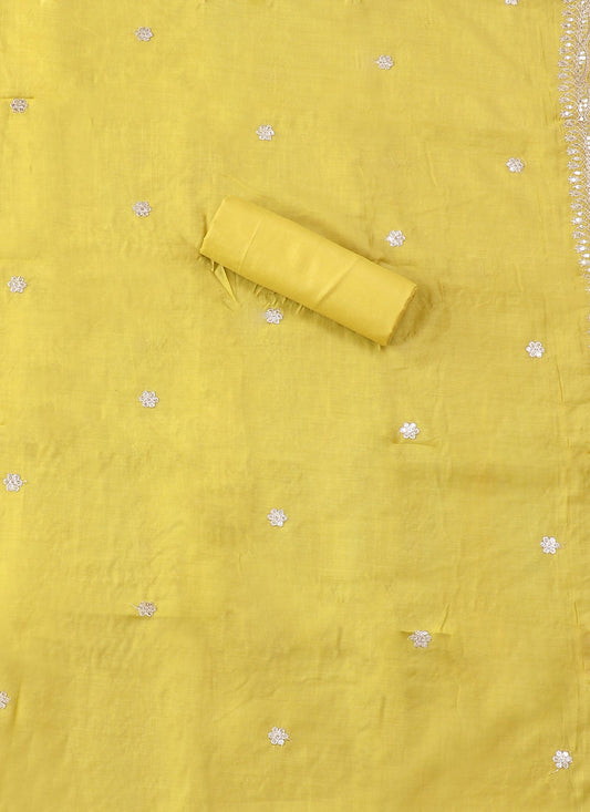 Silk Embellished Green Unstitched Dress Material With Dupatta