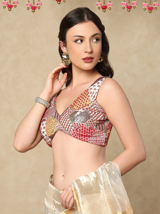 Multicolour Embroidered Georgette Sweetheart Neck Readymade Blouse
