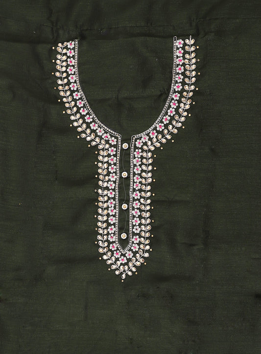 Raw Silk Embroidered Green Unstitched Dress Material With Dupatta