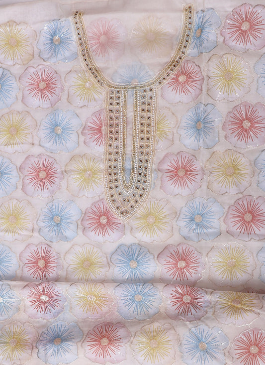 Organza Embroidered White Unstitched Dress Material With Dupatta
