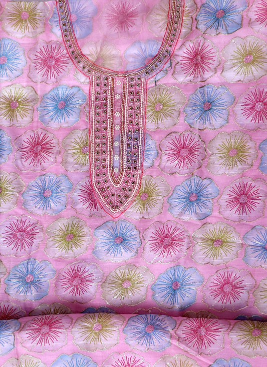 Organza Embroidered Pink Unstitched Dress Material With Dupatta