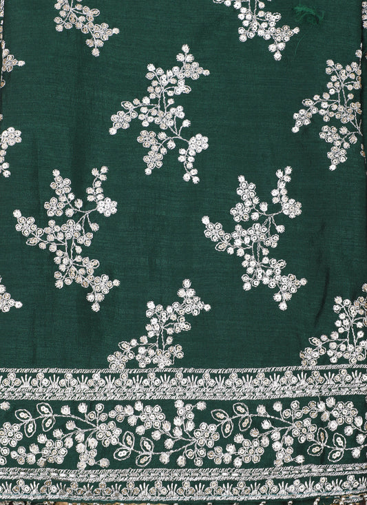 Silk Embroidered Green Unstitched Dress Material With Dupatta