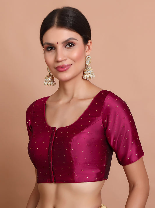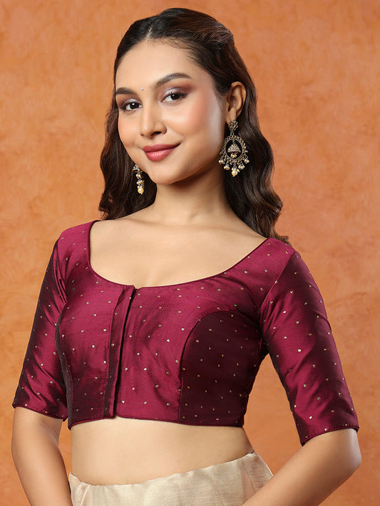 Plum Taffeta Silk Round Neck Readymade Blouse