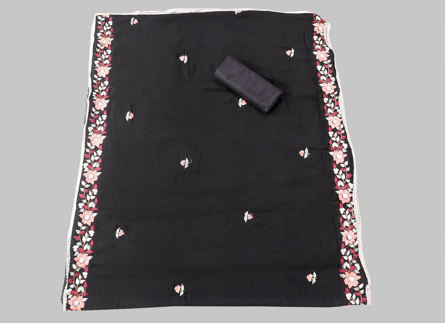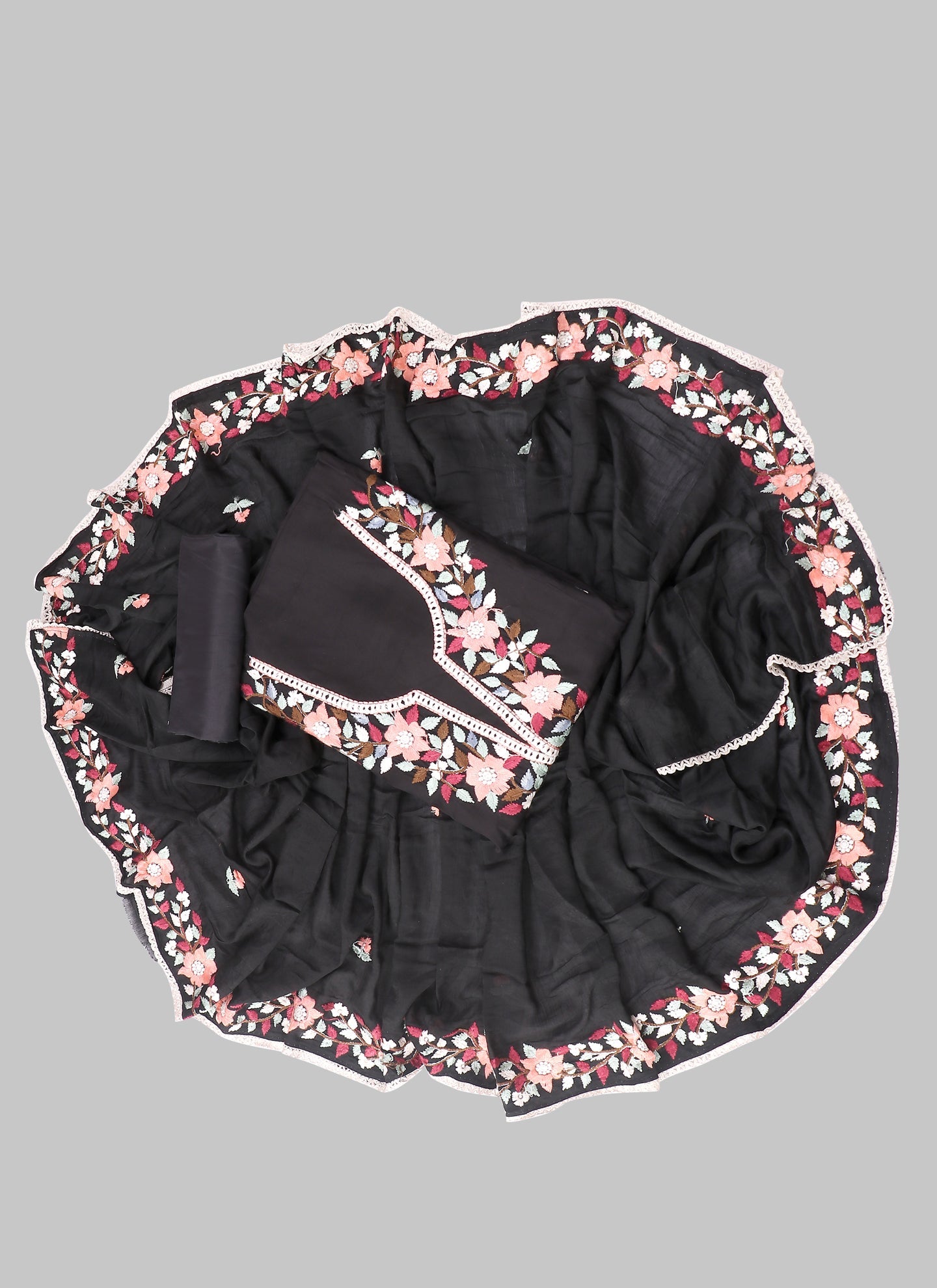 Silk Embroidered Black Unstitched Dress Material With Dupatta