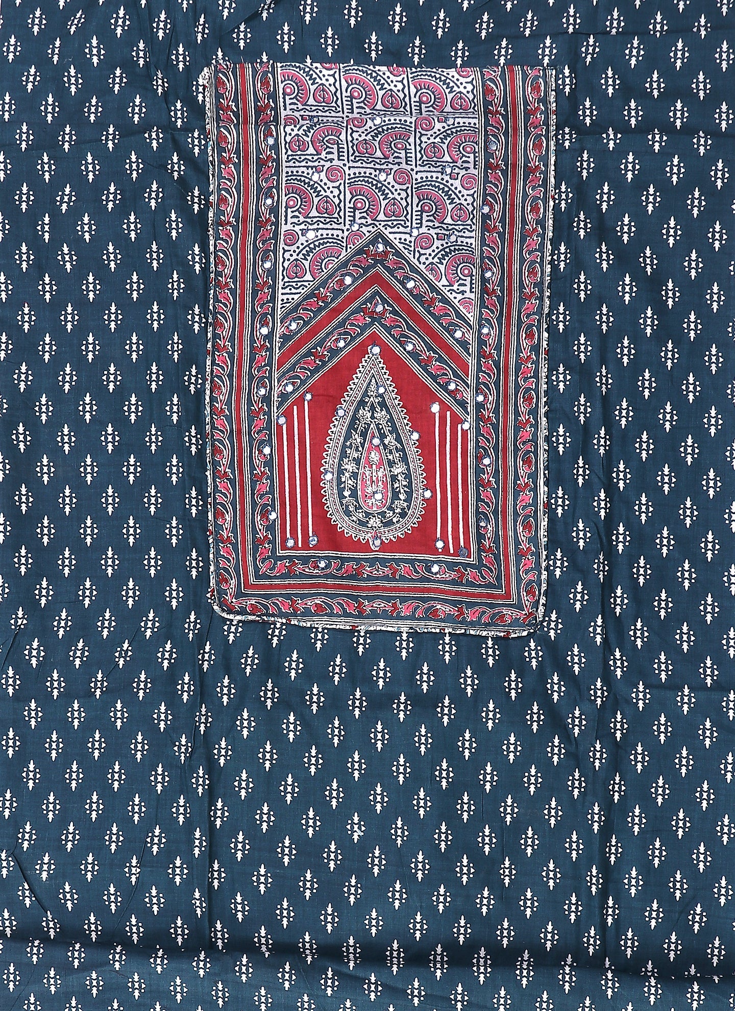 Blue and White Printed Floral Block Print Cotton Unstitched Dress Material