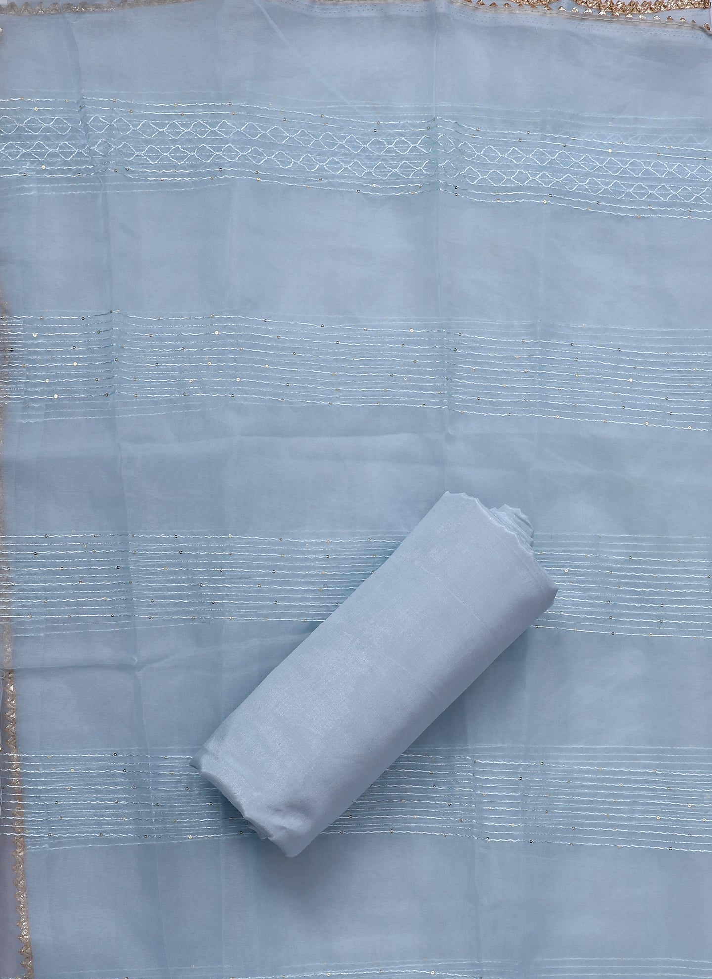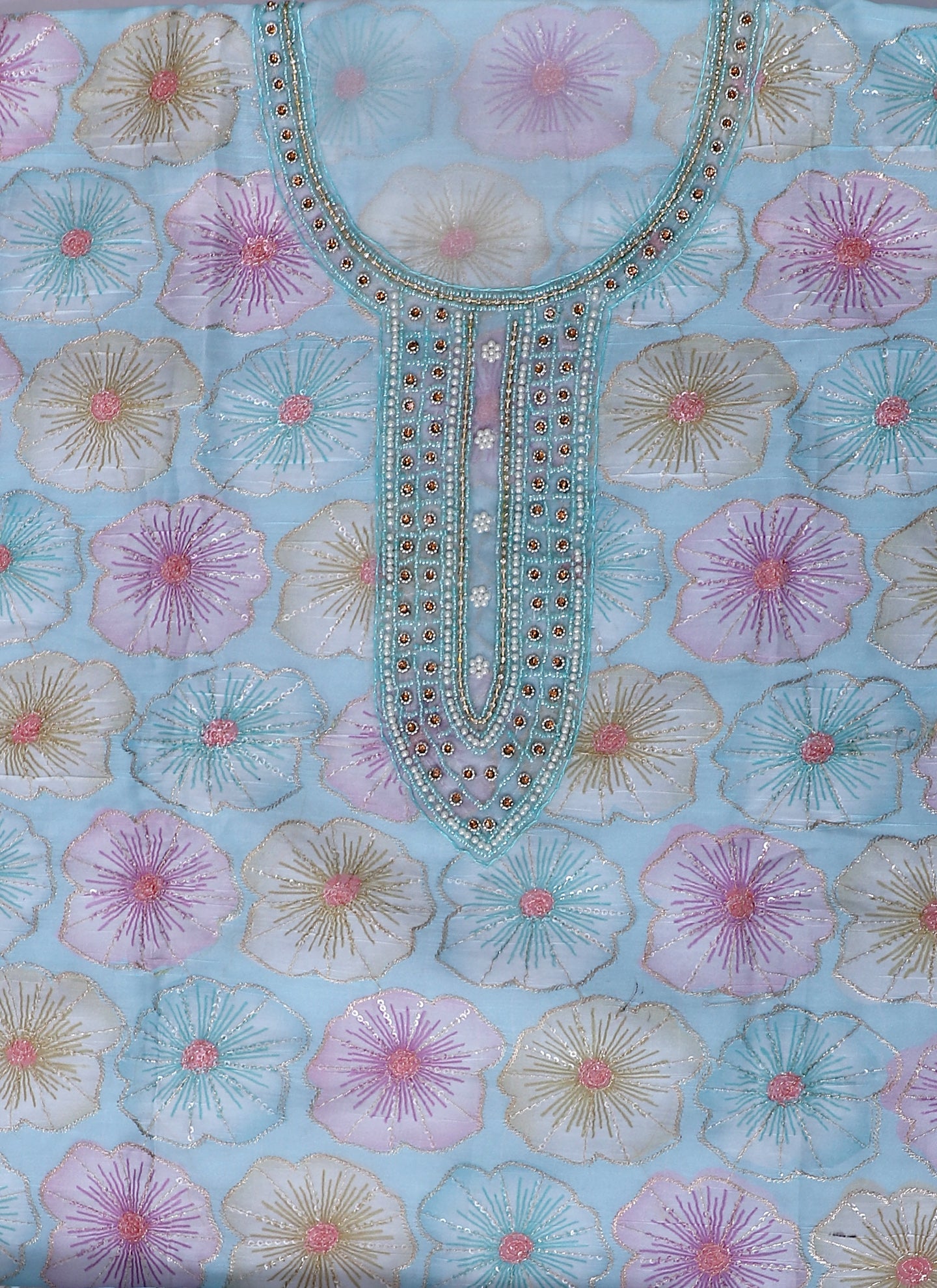 Organza Embroidered Blue Unstitched Dress Material With Dupatta