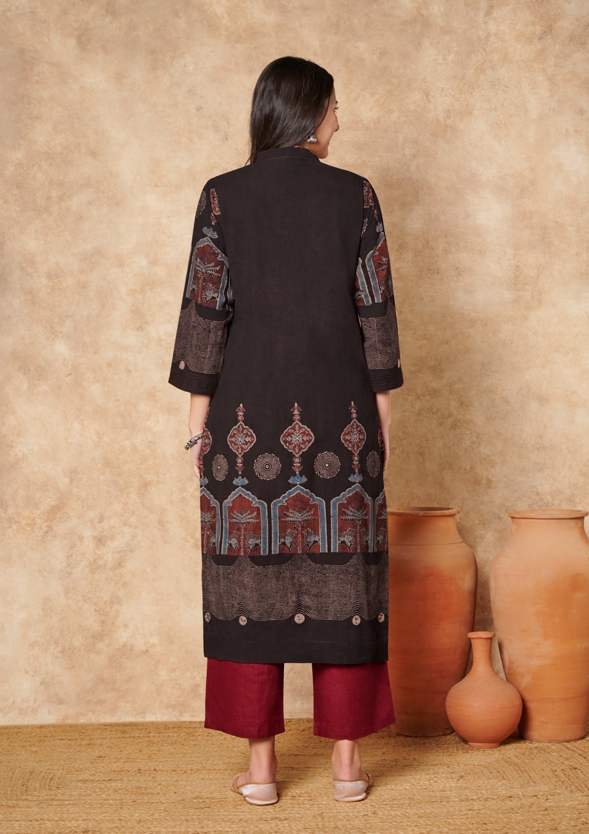 Classic Brown Ajrakh Pure Cotton Oversized Long Kurta