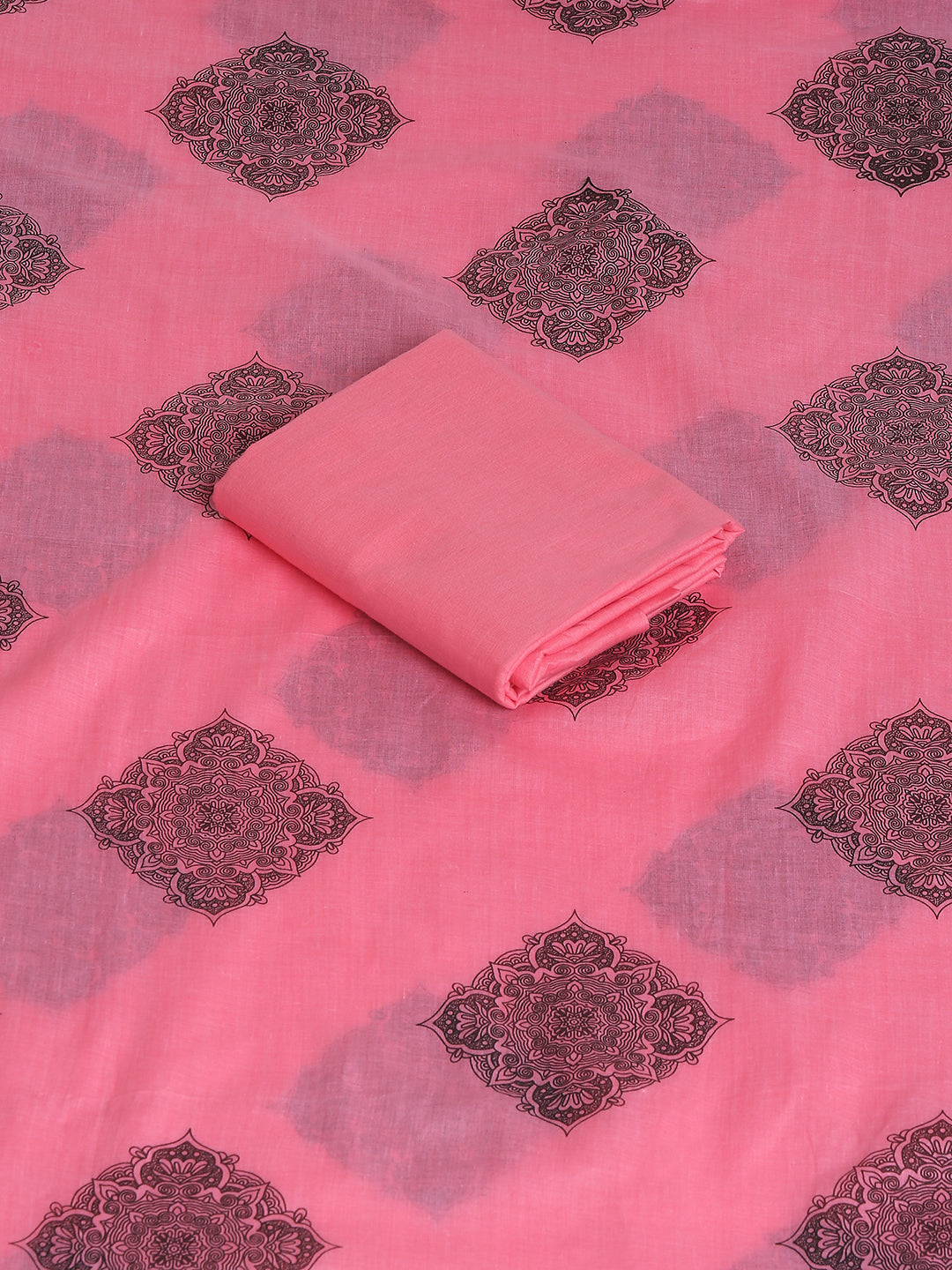 Cotton Embroidered Black & Pink Unstitched Dress Material