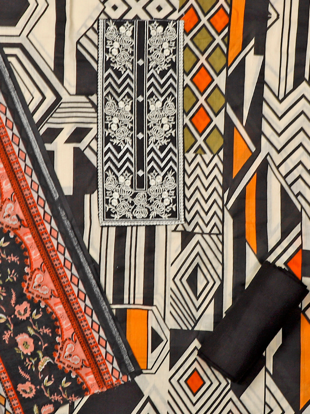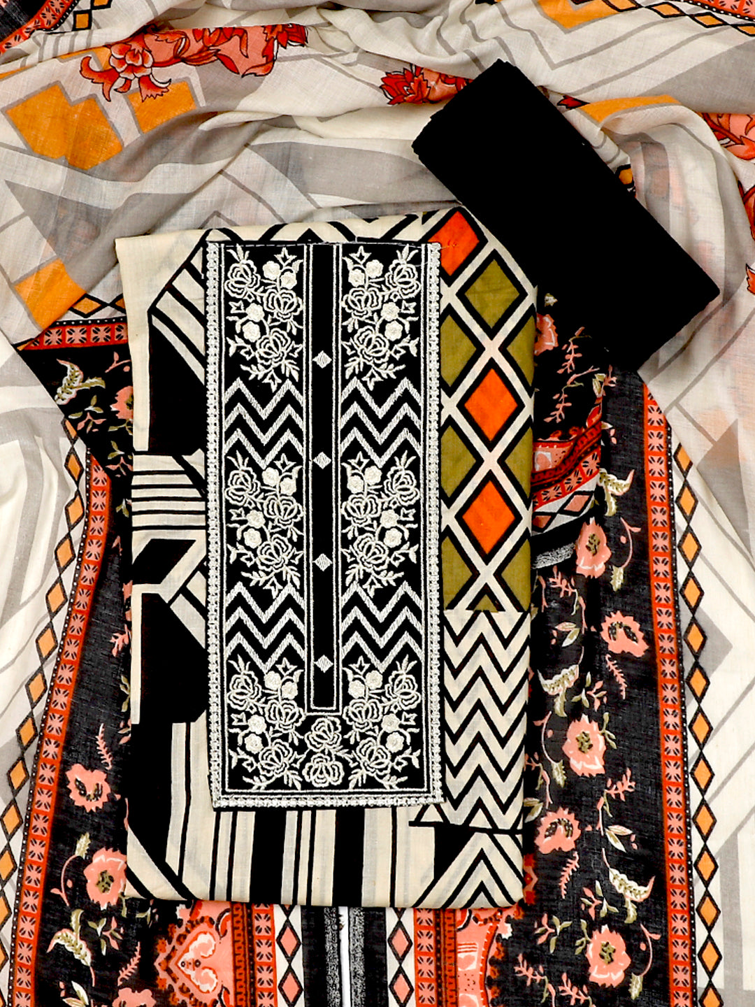 Cotton Printed Multicolor Unstitched Dress Material