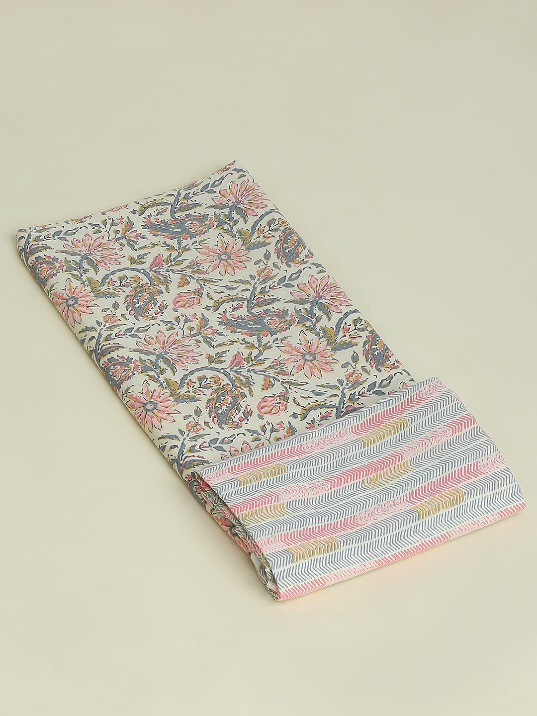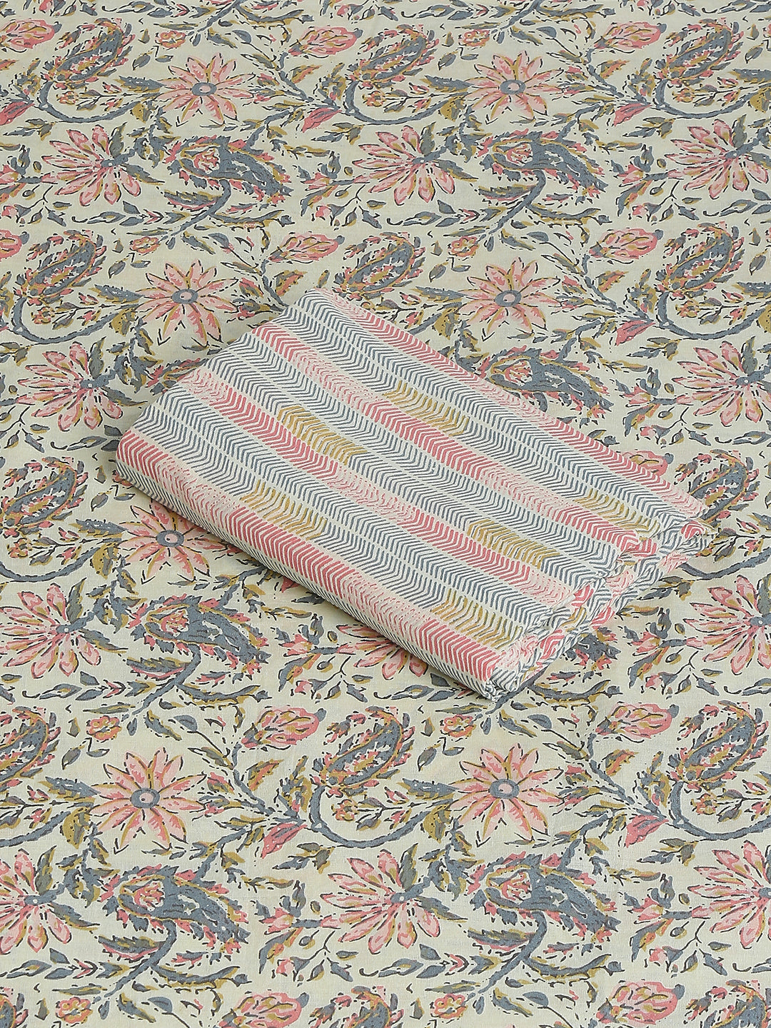 Cream Printed Cotton Printed Unstitched Dress Material (2 Pc)