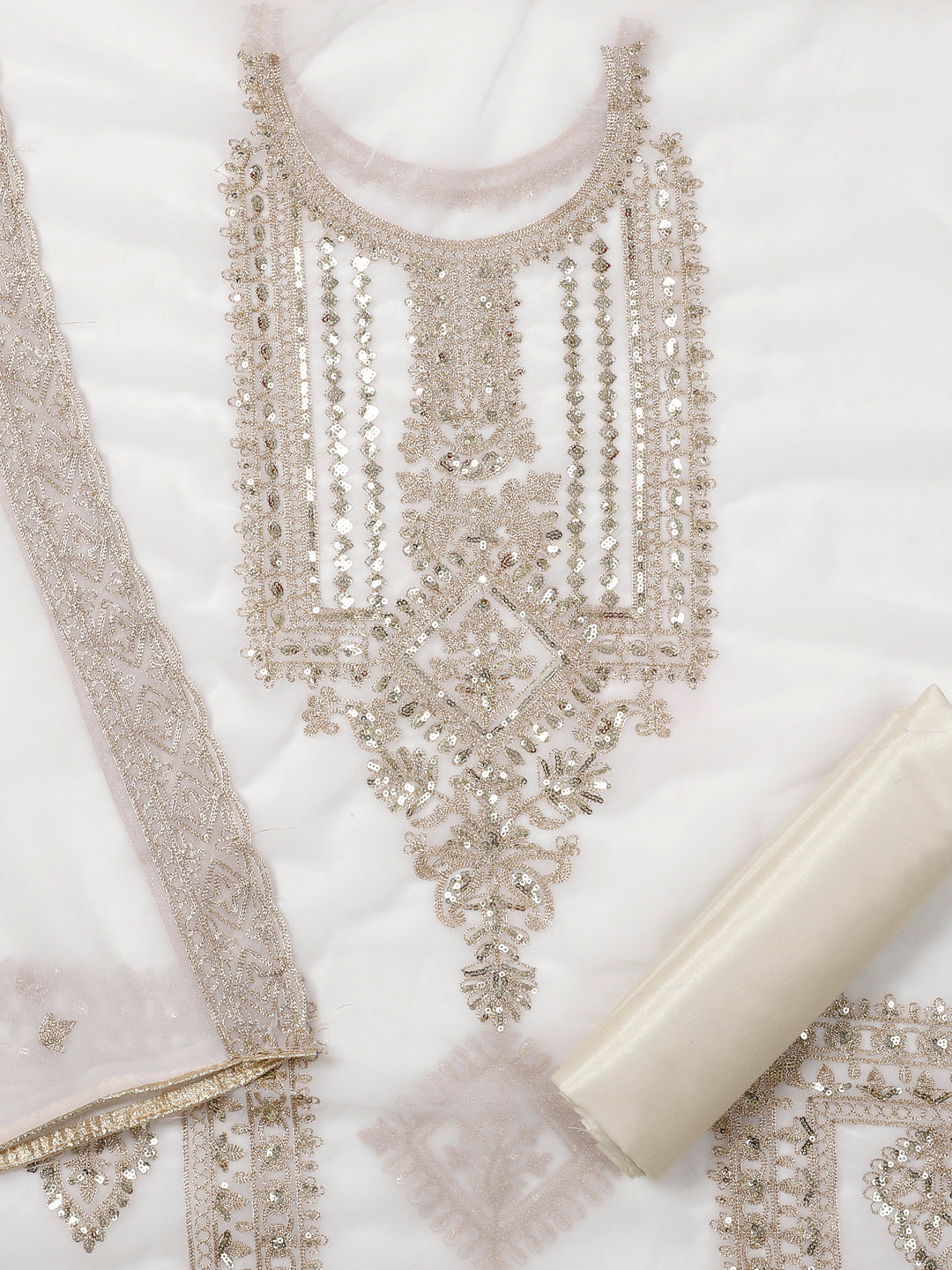 Description : Georgette embroidered unstitched dress material features lightweight, flowy fabric known for its soft texture and elegant drape. Adorned with intricate embroidery, it combines timeless charm with a contemporary touch. Ideal for custom tailoring, it offers a graceful silhouette, perfect for festive and special occasions.